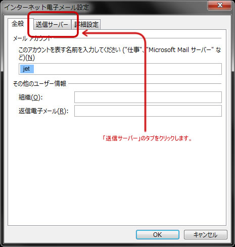 ※電子メールアドレスが○○○@jet.ne.jpの方は、「smtp.jet.ne.jp」となります。