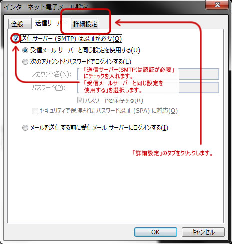「受信メールサーバーと同じ設定を使用する」を選択します。