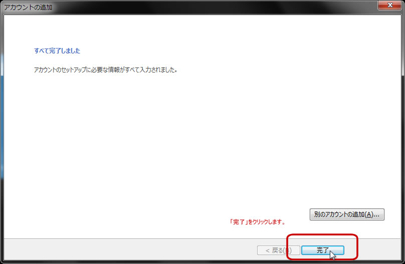 4.[電子メール アカウントの追加]画面に切り替わります。